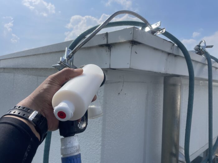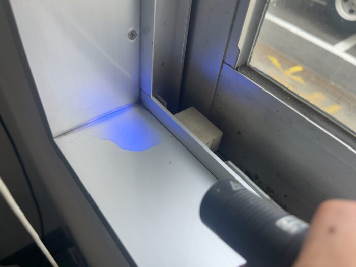 工場・倉庫 雨漏り修理前に雨漏り調査No.341│工場│サッシ枠組み 物件名 ㈱M K㈱様 調査時期 2025年9月 構造/用途 工場 調査部位 サッシ廻り 調査場所 三重県 雨漏り調査の様子 調査箇所 原因箇所サッシ縦枠と横枠組合せ部 散水 漏水確認(青色) 原因箇所 水切り端部 散水 漏水確認(赤色) 調査レポート一覧 工場・倉庫 雨漏り修理の前に雨漏り調査 No.303│鉄骨造倉庫│外壁ALCクラック 工場・倉庫 雨漏り修理の前に雨漏り調査 No.299 |鉄骨造 工場 |ジョイント劣化等 工場・倉庫 雨漏り修理の前に雨漏り調査 No.261|鉄骨造平屋 倉庫|明かりとり 工場・倉庫 雨漏り修理の前に雨漏り調査 No.249|鉄骨造 工場|折板屋根水上施工不良